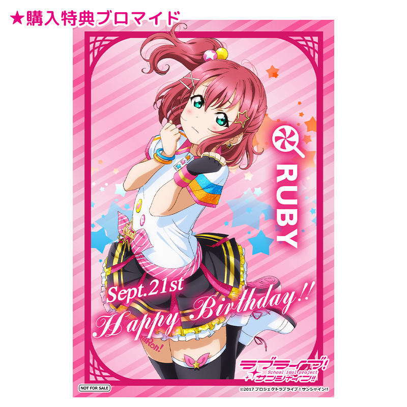 「バースデーポストカードセット ルビィ '20リバイバル」または「バースデーナンバープレート ルビィ vol.2」を含む予約販売期間中の1注文につき、購入特典ブロマイドを1枚お付けいたします!